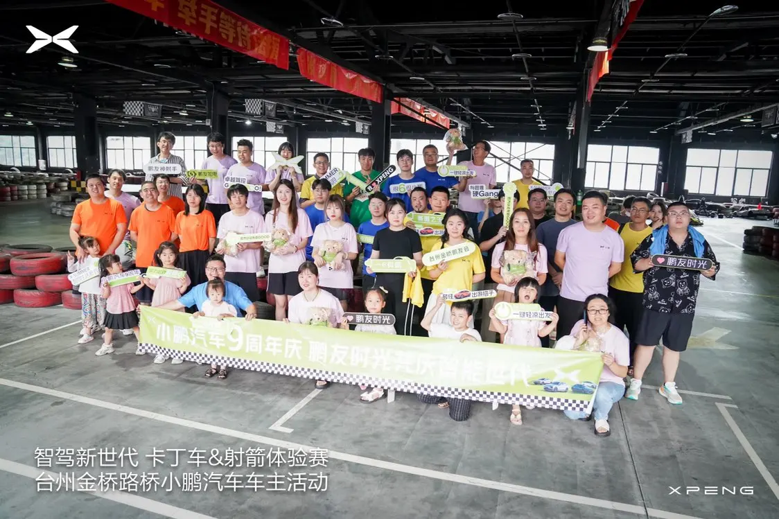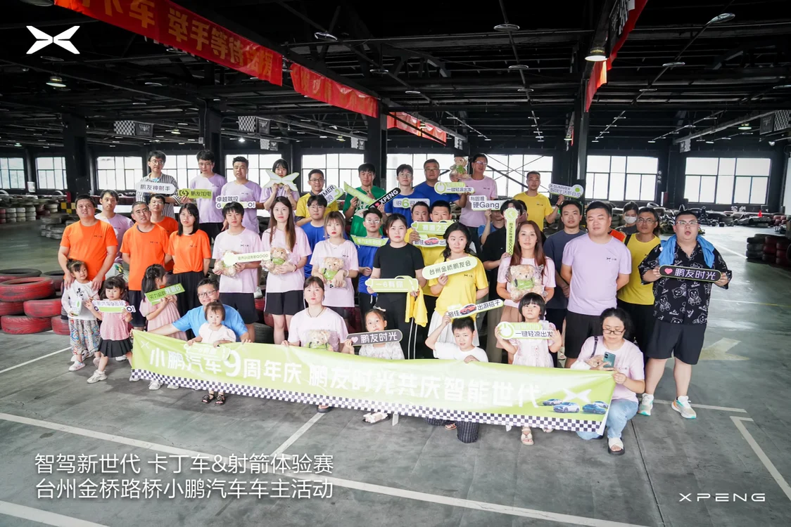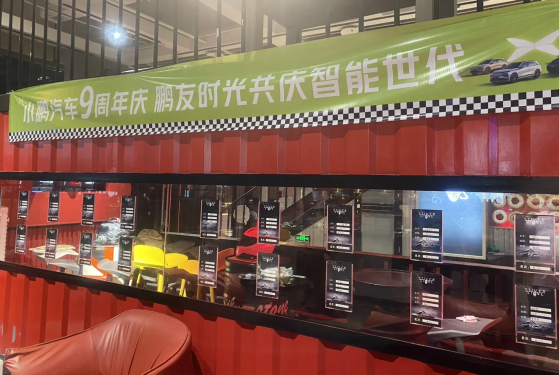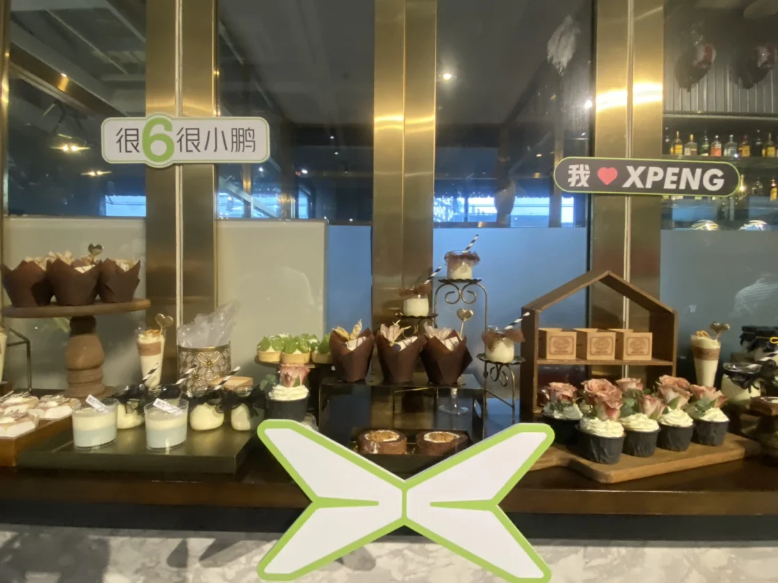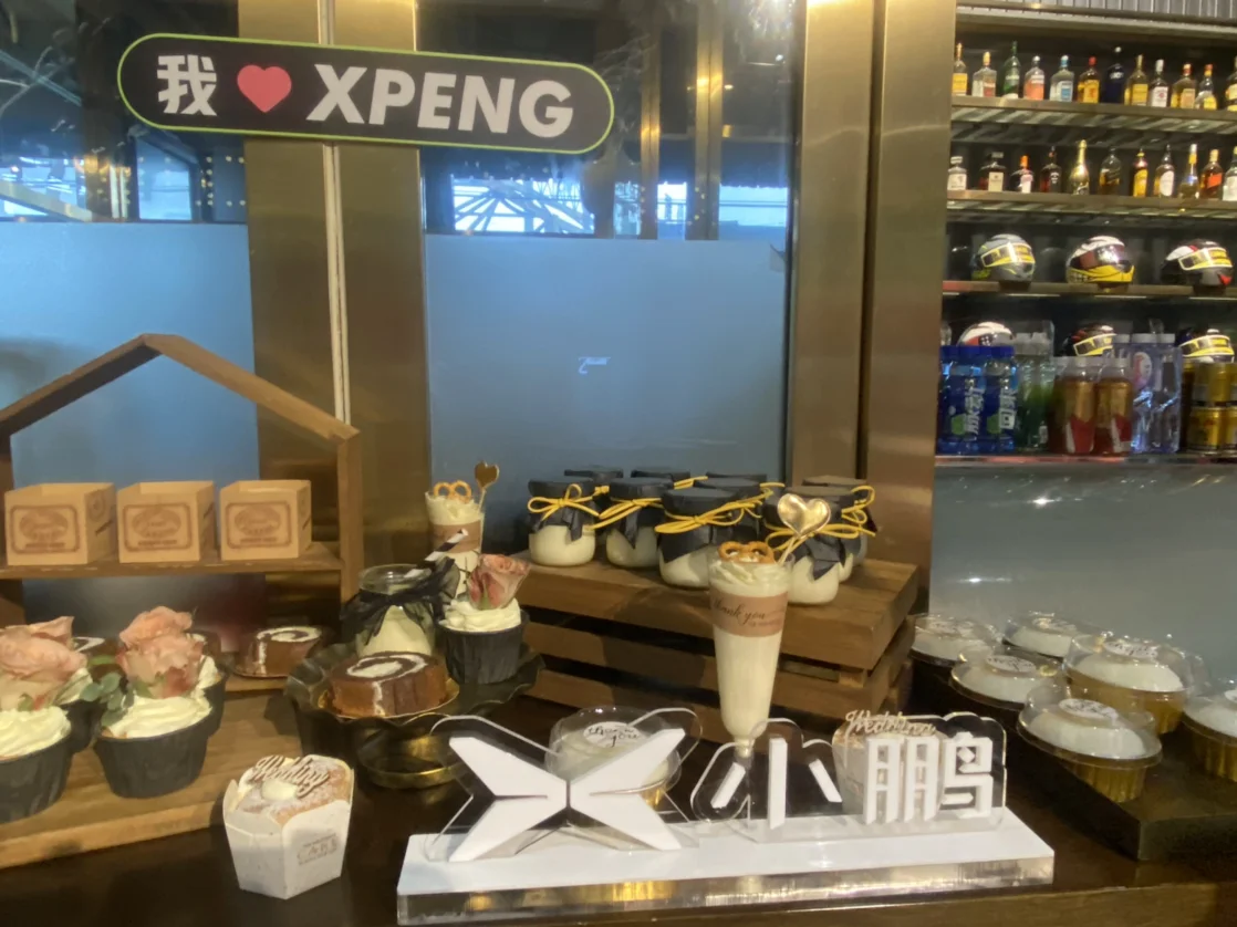 此外吧台点心水果畅吃.活动费用全免.离场的时候每个小鹏车主都获得一只小鹏9周年庆版小熊公仔.