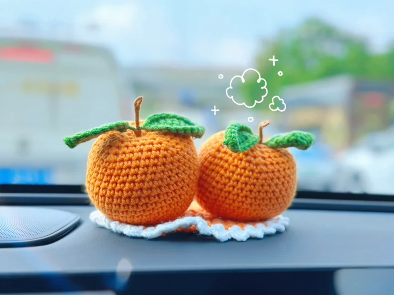 自己编织的小桔~太有成就感了,固定在中控台上,堵车的时候看一眼也不会那么枯燥!