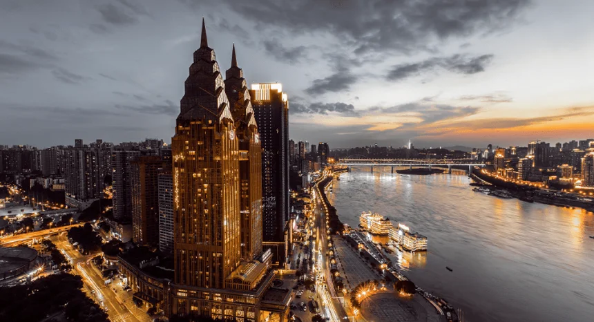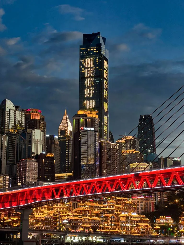 从大桥上看到两侧的夜景,再下到重庆南滨路,下来滨江路以后我就打开了LCC,一路边欣赏着对面整个渝中半岛带来的山城极致夜景,真的美翻了