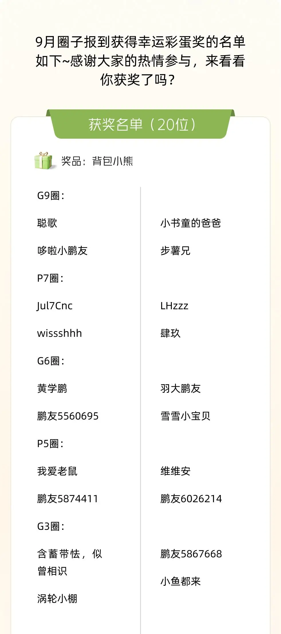 幸运彩蛋奖 | 背包小熊(4位)