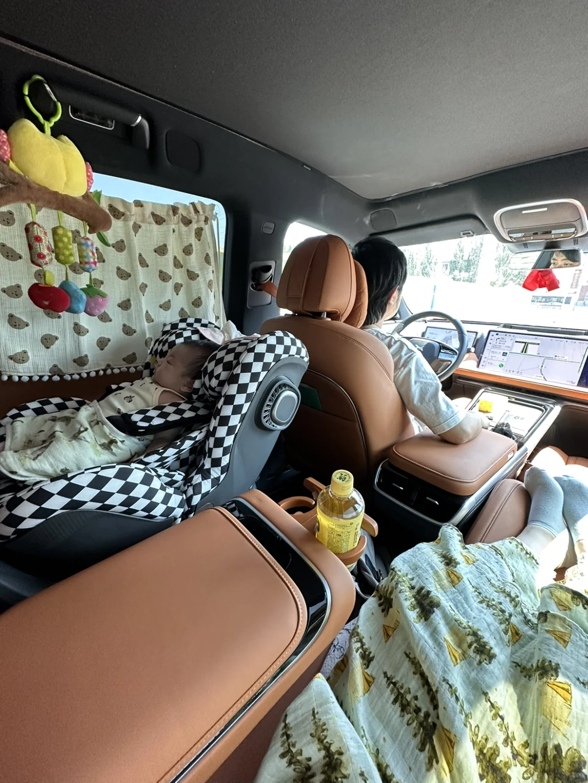 两个多月时 带着小宝宝出去兜风 G9 平稳的地盘和安静的驾驶体验 让小宝宝第一次坐车感动舒适,路上睡得很香甜
