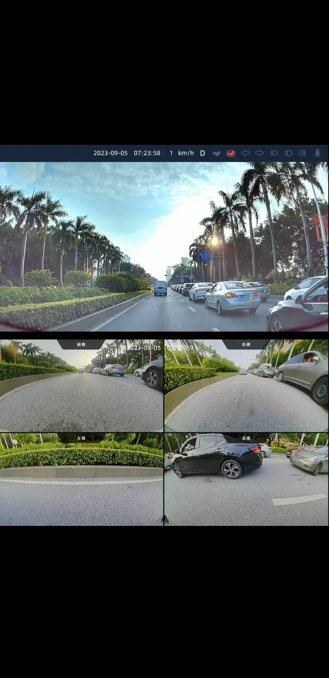 2.在大家看第一段视频的时候不知道有没有注意到,低速打转向灯时,行车记录仪环视图视角自动切换到相应方向转向灯的画面,其他三个方向画面会丢失,我不清楚这是有意为之,还是没有考虑到,但是我个人认为此时行车记录仪应该继续保持四个方向的画面记录才更合理,否则真有情况真是秀才遇到兵,有理说不清🧐。