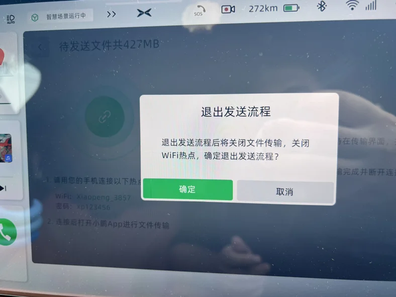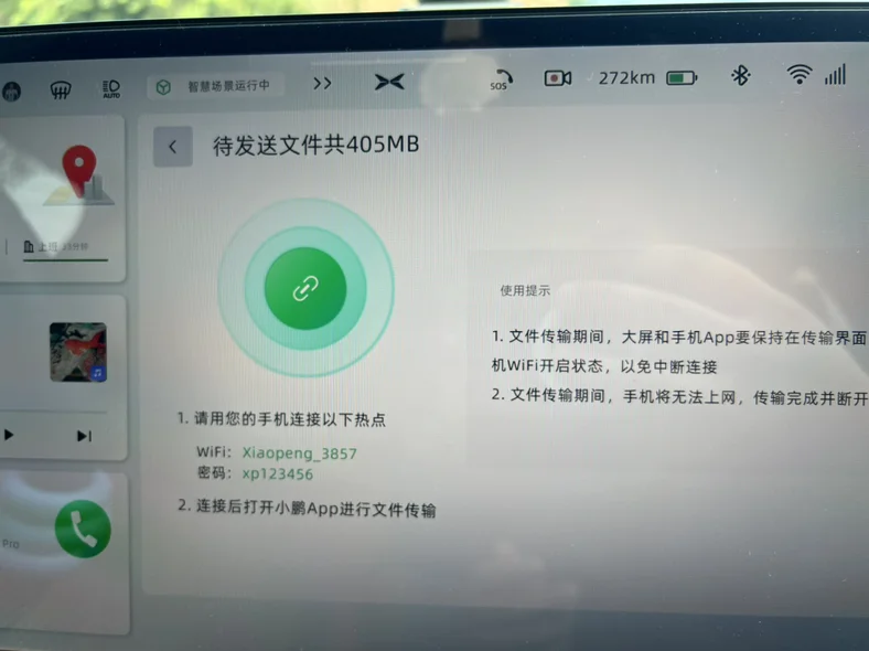 画面右下角,提供发送到手机(删除键左边👈),需要把手机链接到车机热点,然后打开小鹏app进行文件传输!