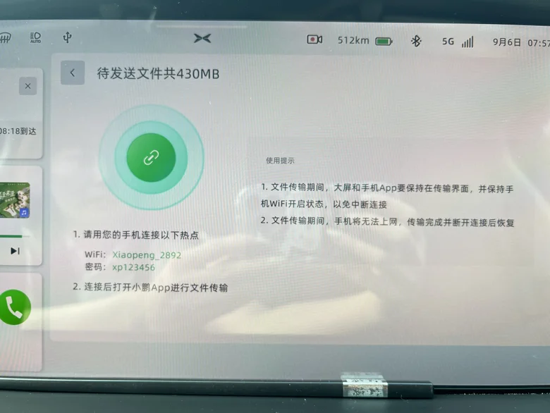 结果发现可以了!在车机大屏点击自己的手机,就开始进入传输界面了