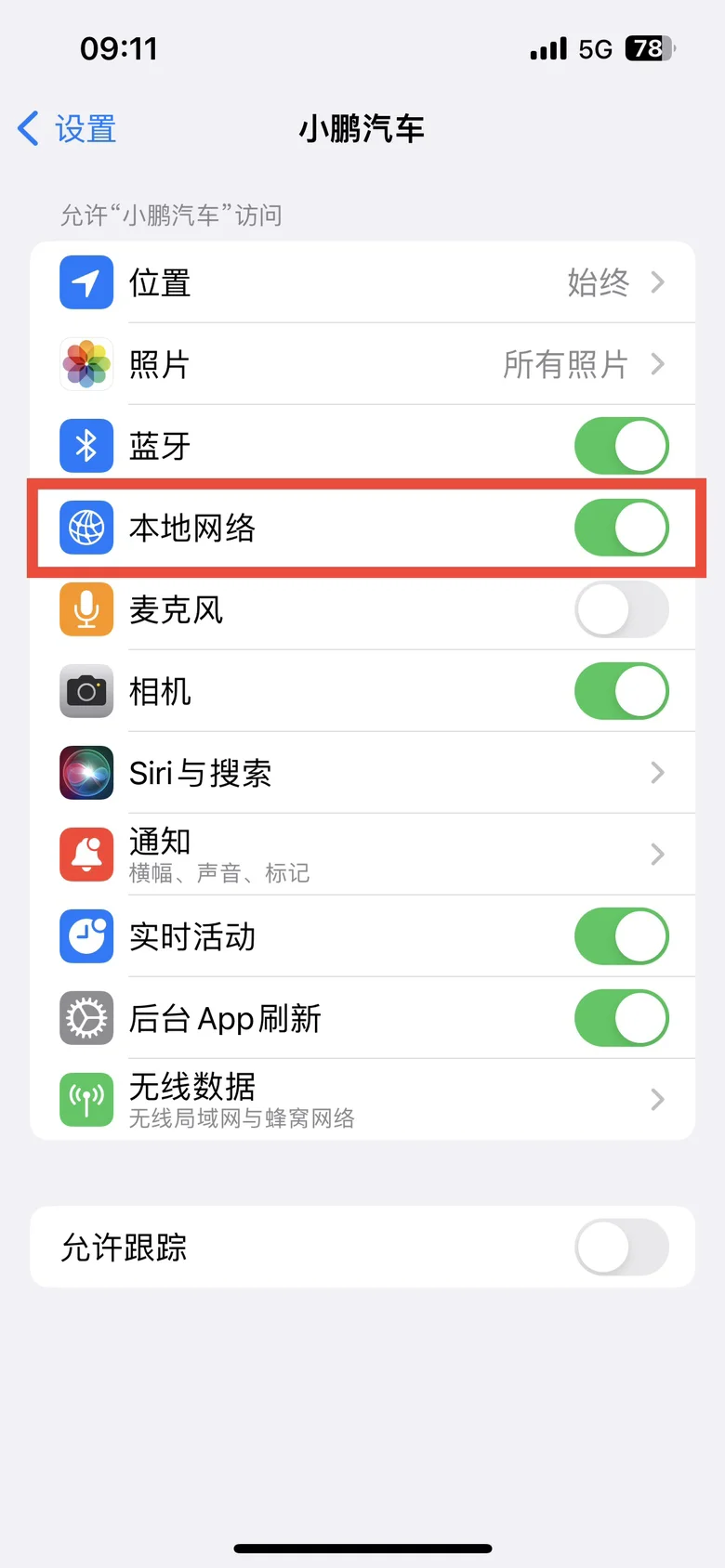 我手机连接wifi后,打开app,但是一直没有反应,手机车机都没有反应,尝试过打开关闭手机数据、重启app、重启手机、飞行模式只开蓝牙和wifi,都失败了🙅,联系远程问诊也没有发现什么问题,就在最后工程师建议我去售后检查时候,他提出让我看一下手机是否打开本地网络按钮(需打开)