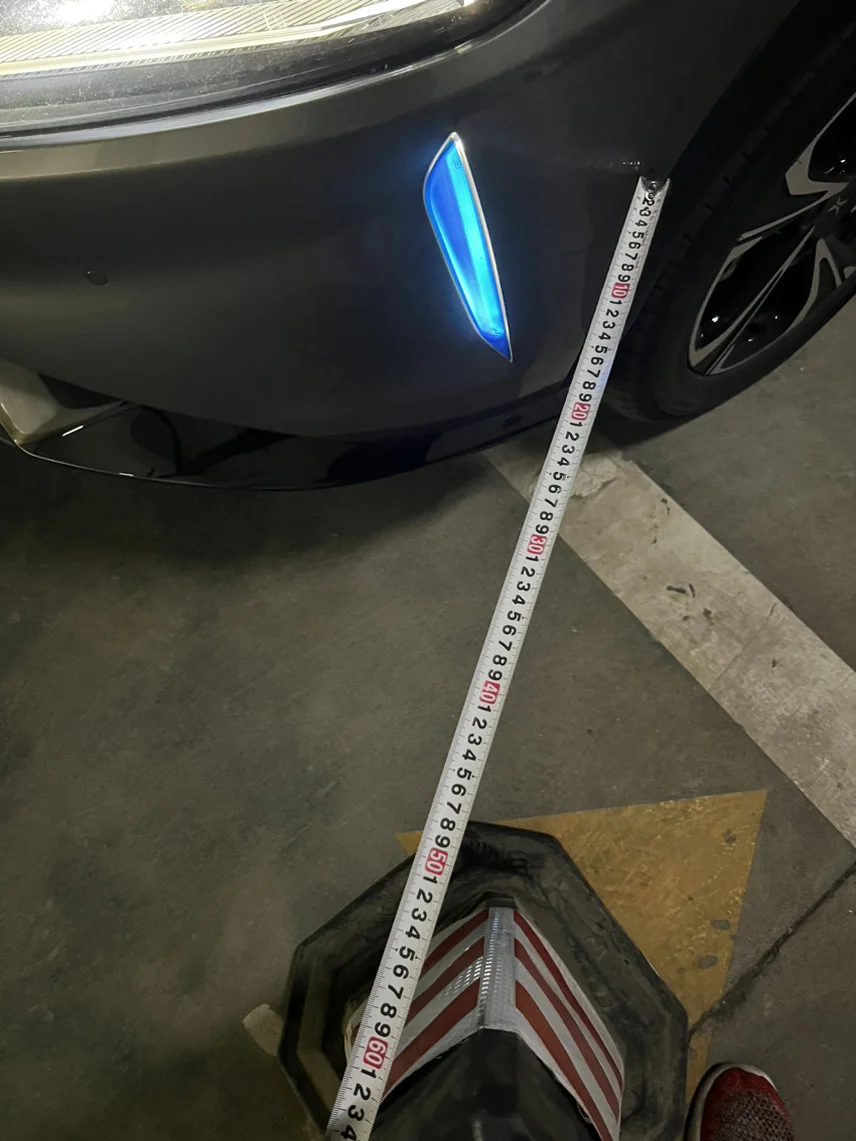 可以想象这个功能是配合超声波雷达实现的,其实超声波雷达探测距离很短。那么对于障碍物来说,距离多少会弹出辅助呢?实测大概60厘米。钢卷尺拉的,不准也差不多吧…哈哈🤗