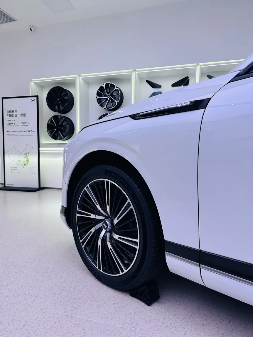 一眼看过去,外观基本上和23年的G9差不多,还是一样熟悉的前后贯穿尾灯前脸和双激光雷达。侧身像路虎揽胜运动一样高级的线条和比例,美腻的姿态依旧让人流连忘返,配上21寸的多幅轮圈显得更加霸气外露,据说空悬版可以调得很低,就像一台旅行车的姿态。