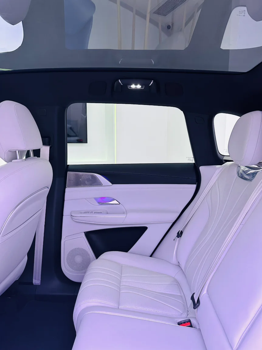 打开车门进入车内,灰白色的内饰确实相比23年的棕色显得更年轻更运动,质感看起来也更好,还是头层小牛皮NAPPA座椅,座椅依旧非常柔软,这一次小鹏也终于是愿意给G9加上靠背通风了,同时,一些细节优化的更好了,后排空间的空间营造感由于浅色内饰显得更强了。🎉