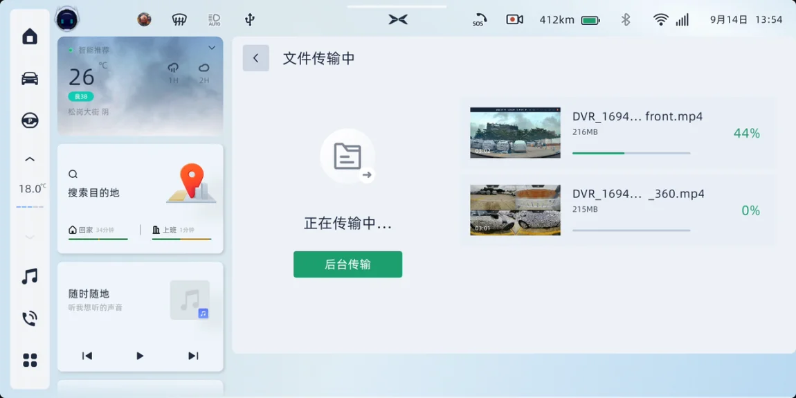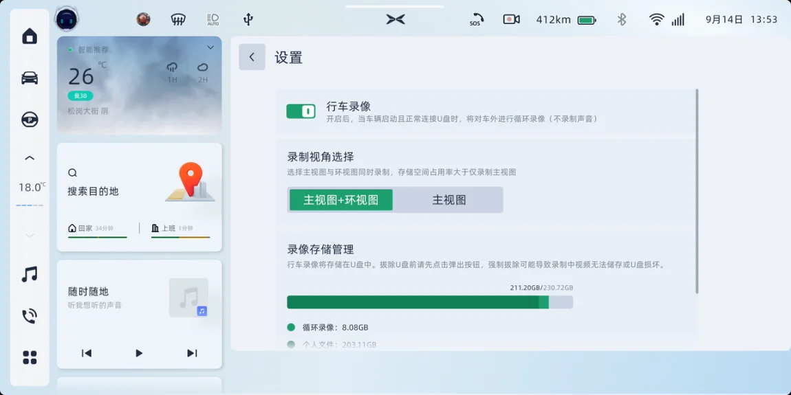 - 行车录像将存储在 U 盘上,也支持用户在大屏直接将视频发送到手机