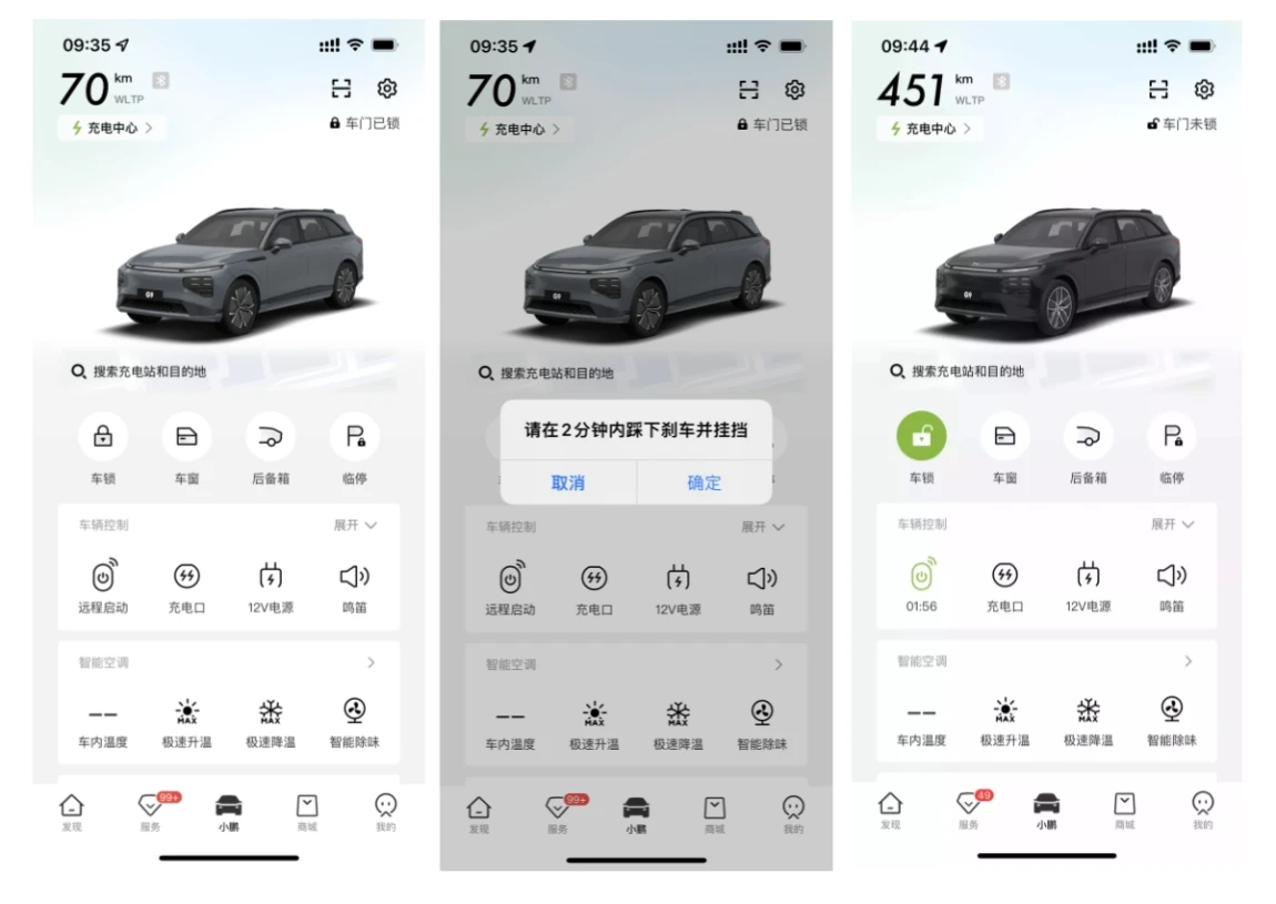 - 小鹏汽车 App 新增远程启动功能,当蓝牙钥匙无法启动车辆时,可在 4G / WiFi网络连接下启动车辆。该功能更新可支持洗车 / 借车场景临时为用车人远程启动车辆