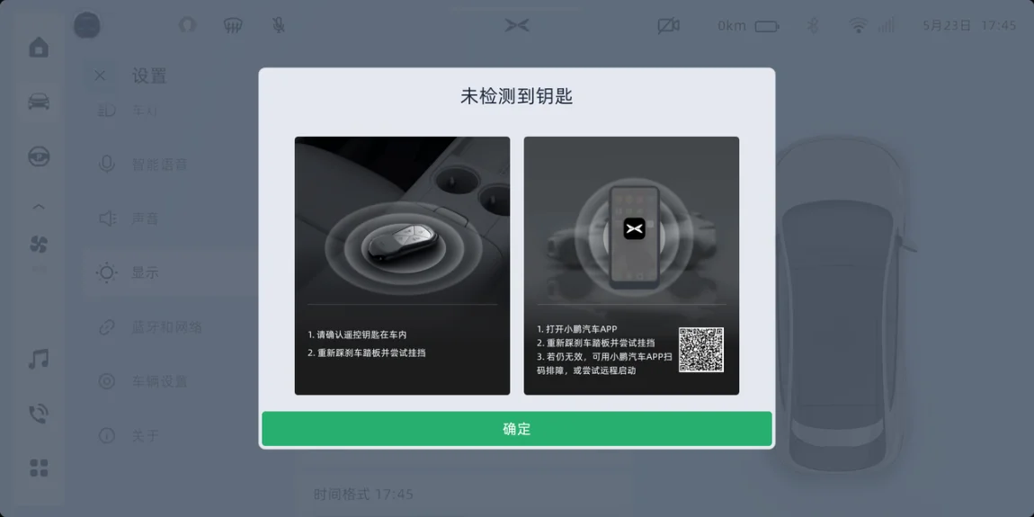 - 若主驾挂挡失败,可通过扫描大屏二维码,在小鹏汽车 App 进行自动排障