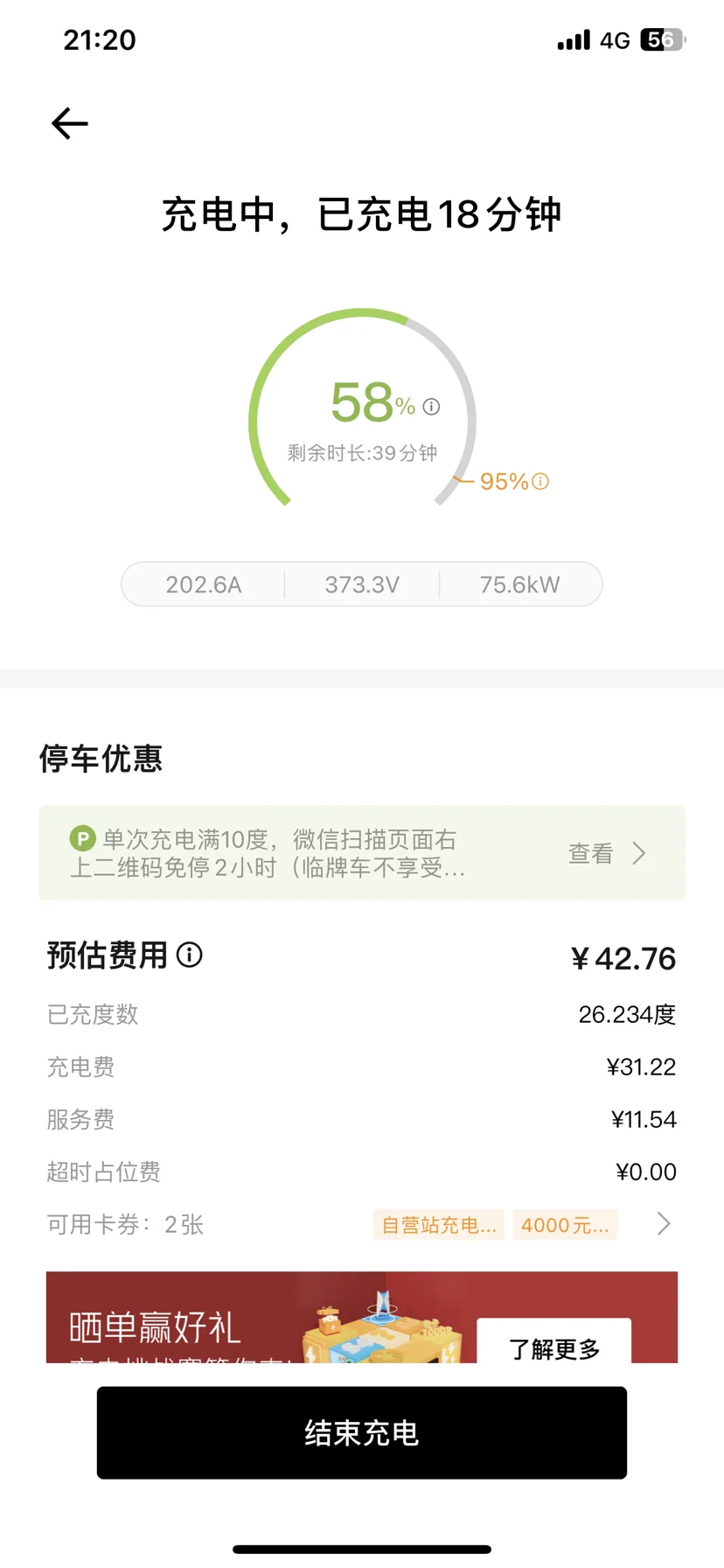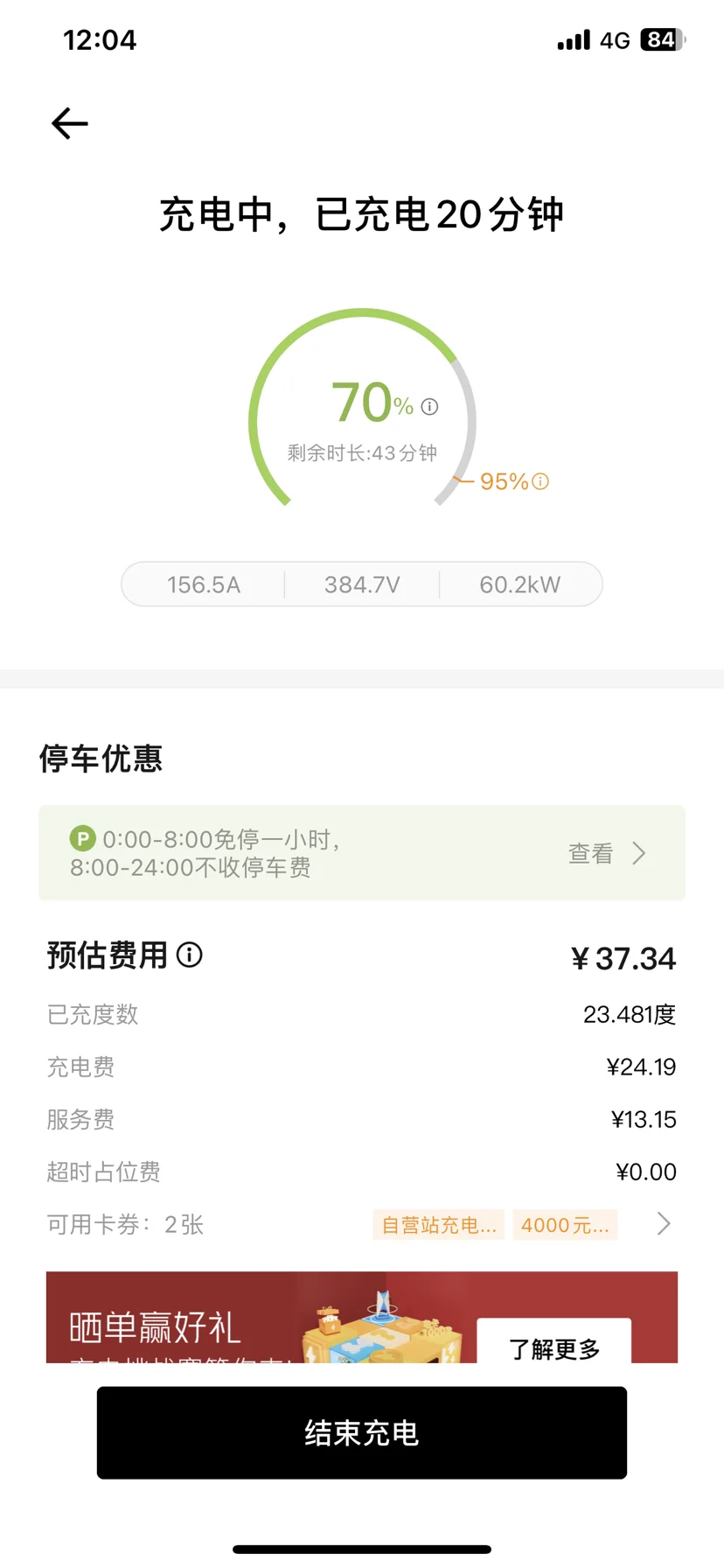 最后,到达长沙后来到了洋湖服务中心补能,20分增加续航约240公里,非常满意。有800v加持的G9G6估计更快,以后有机会再将家里剩下的油车置换成G9。