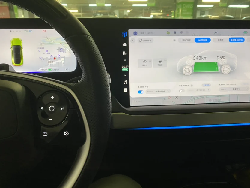 回到补能主题,选择下午1点左右出发,出发前将小p充到了95%,在宜家的自营充电站,充电速度很满意,吃个饭的功夫就正好充满了。