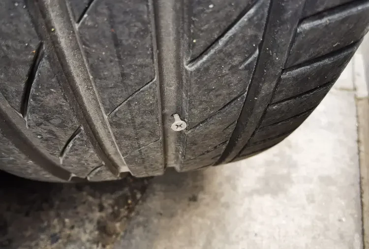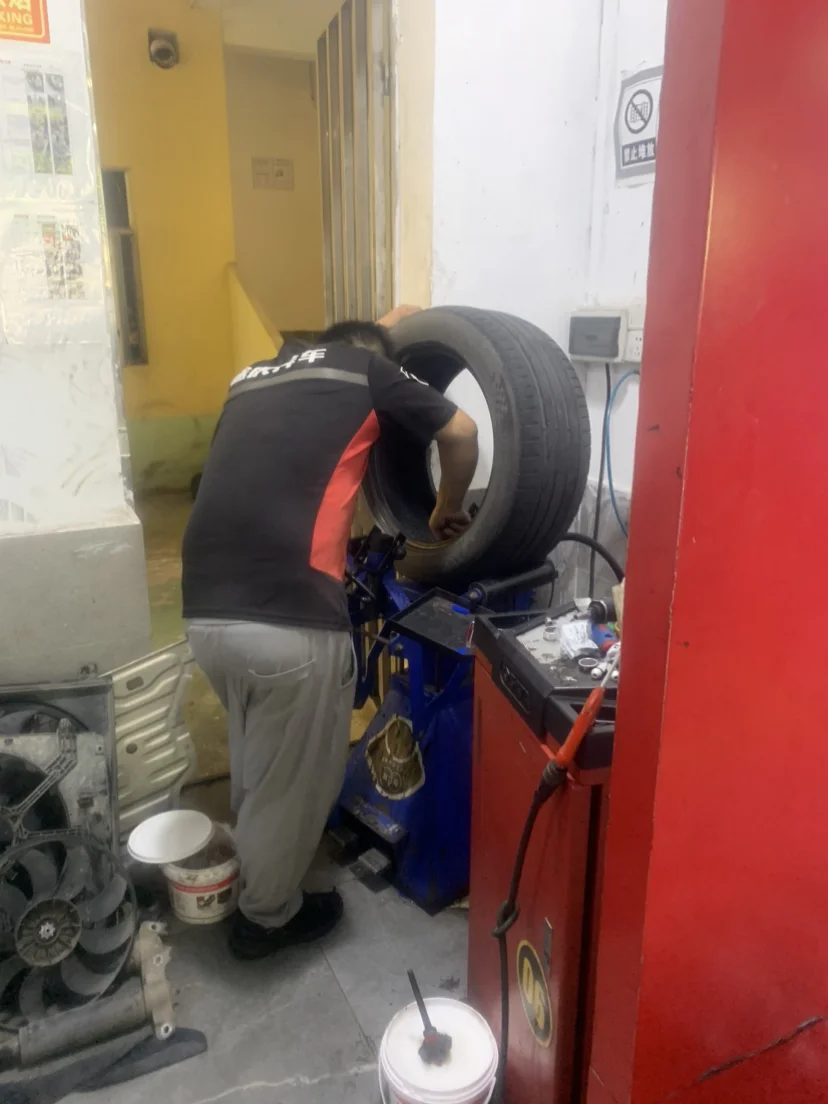 去到了修理店发现车胎有个钉钉,唉😮💨倒霉的一天!