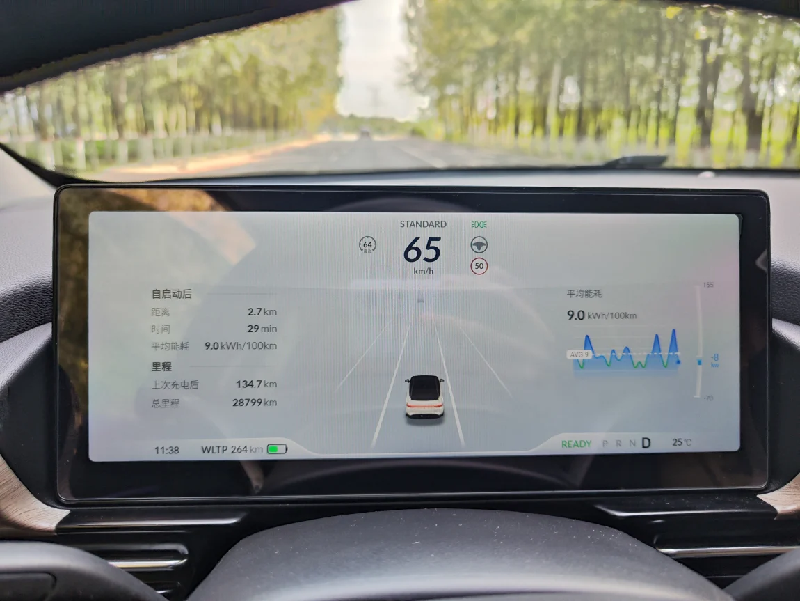 在返程的时候,意外的发现车辆的能耗居然降到了9个,真的是不容易。也许就是在这个时候,没有了上下班赶路的劳累,整个人身心放松,自由自在的开,才能得以有这么低的能耗。