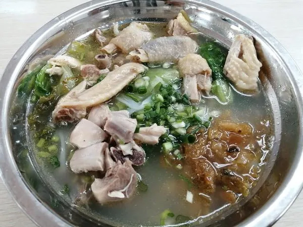 (2)鸡肉粉:鸡肉肉质鲜美,满口香甜不油腻;汤水清甜,其浸泡后的米粉,更是带有了鸡肉的鲜美,米粉洁白顺滑、爽口,真是让人欲罢不能。
