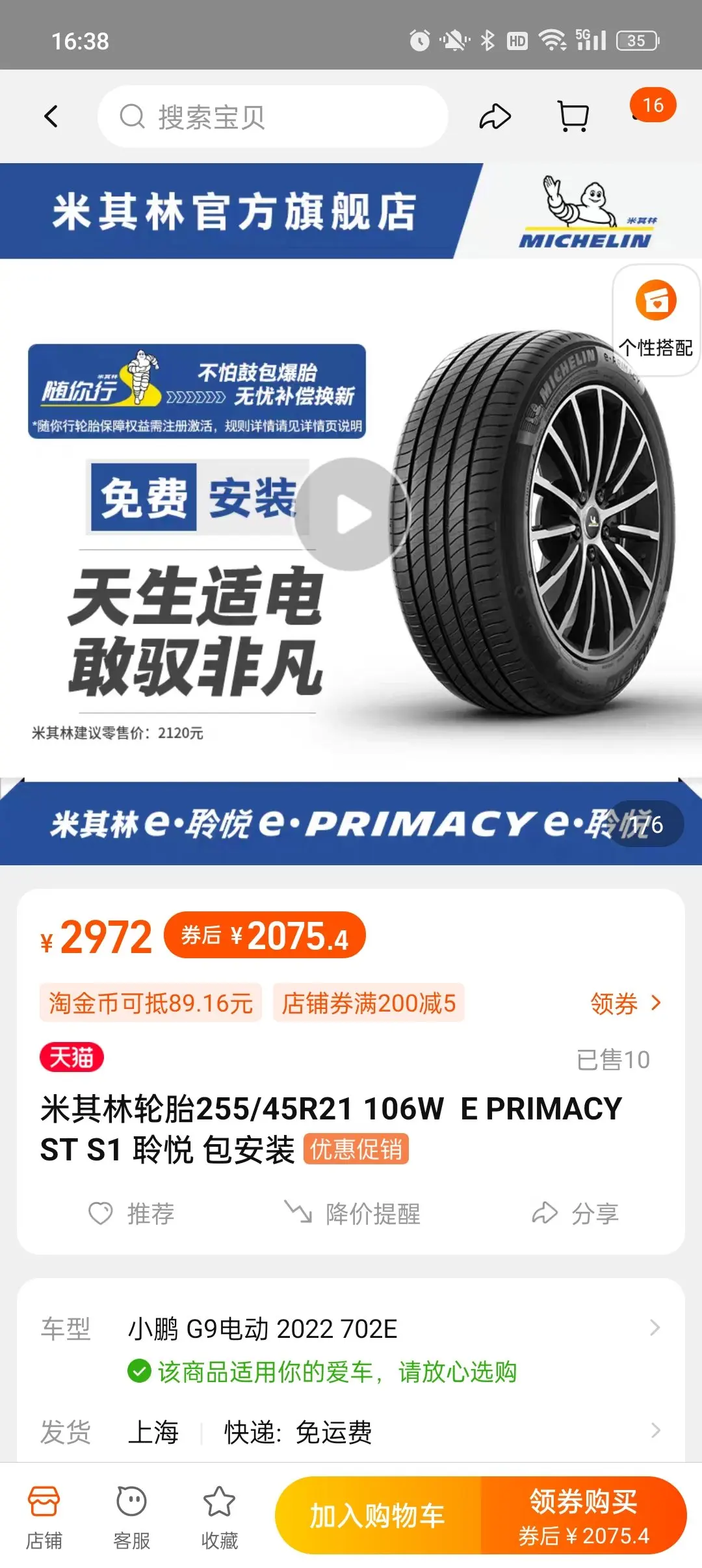 小鹏G9使用的是米其林的ps4 EV,属于轮胎界的天花板,米其林轮胎什么都好,就是价格昂贵。