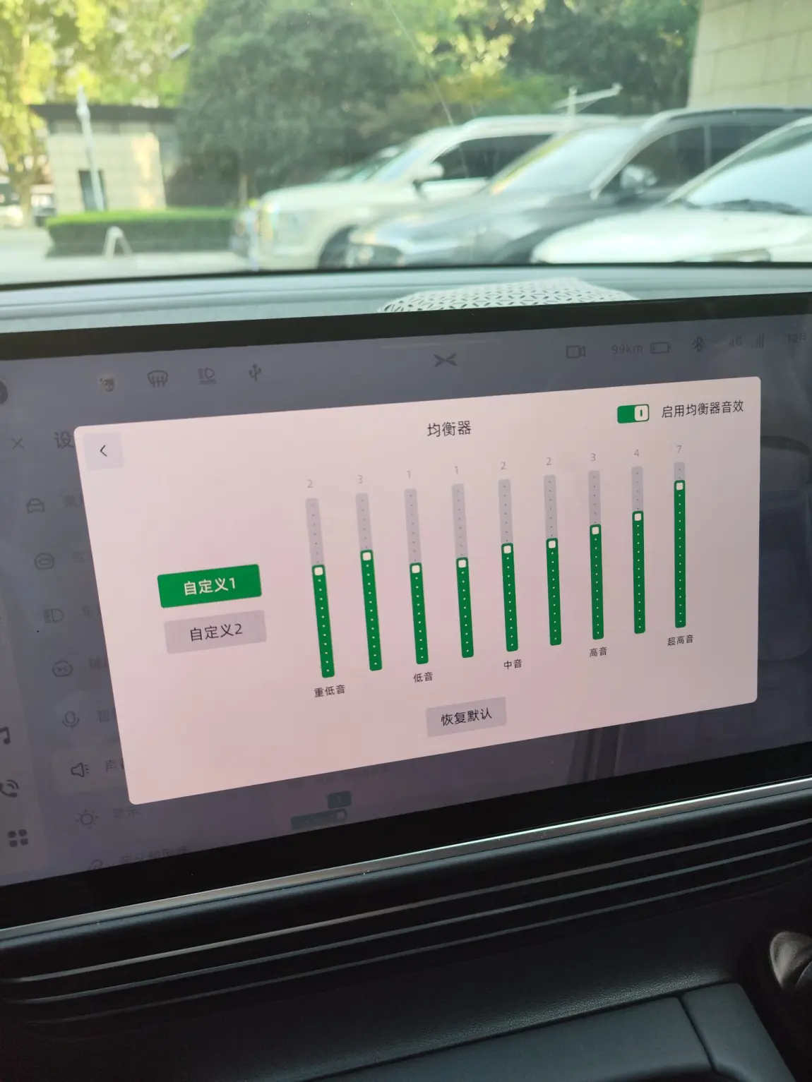当然,在一个月的使用过程中,我也发现了一些不足之处。例如,整体音效不如我P7花18K加装的丹拿音响,不过4.3.2版本OTA之后已经和丹拿有的一拼了,希望后续可以继续优化。主驾座椅稍微短了点,对大腿支撑不是那么好,导致右脚控制电门或刹车时不如P7舒适。另外,蓝牙钥匙有时候没有反应,此项使用频率很高希望可以尽快优化。调音如下: