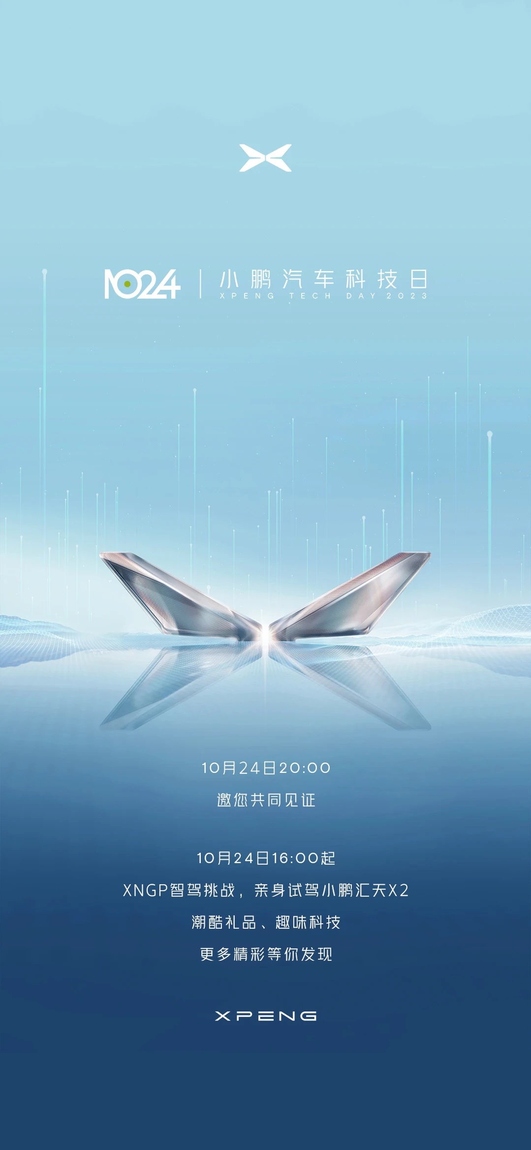 各位鹏友请查收,最新1024节目清单:AI智驾挑战广州闹市、小鹏汇天X2翱翔天空、AI代驾尝鲜体验、发布会黑科技现场探馆,还有压轴大戏——1024发布会。