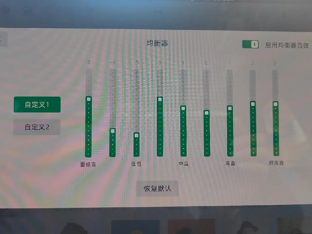 g6喇叭很一般,层次感,定位都很普通,但最致命的是低频共振,经过2个月的不断调试,这个频率曲线目前为止是最理想的。高频清晰,中间的人声也不单薄,低频也不再糊成一片而是变得比较有弹性,整体来说比较适合听流行音乐。音乐模式为动感,空间音效关闭