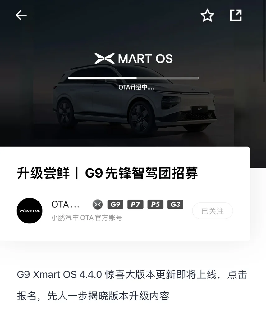 买小鹏不就是买科技智能吗?必须快人一步,抢先体验。10月24日招募名单出来后说要3天陆续推送更新。结果晚上的1024直播中就已经发来了更新的通知👏👏👏