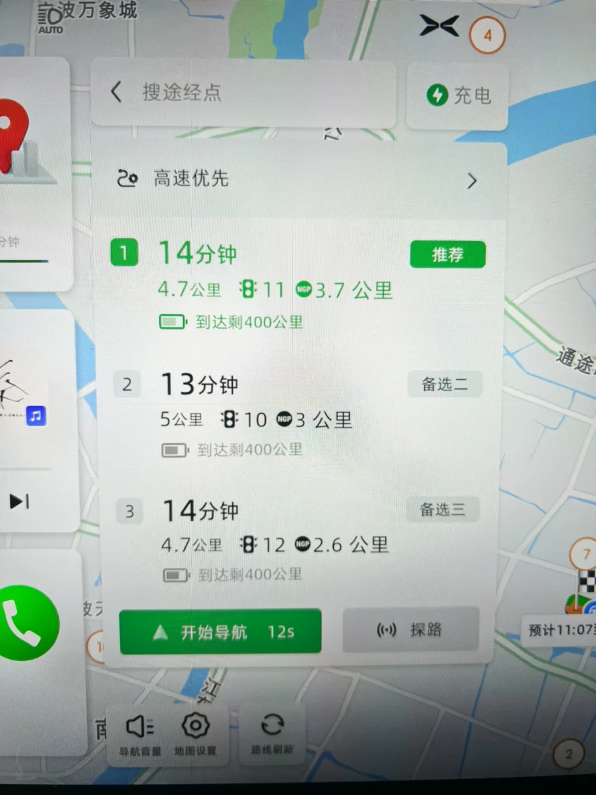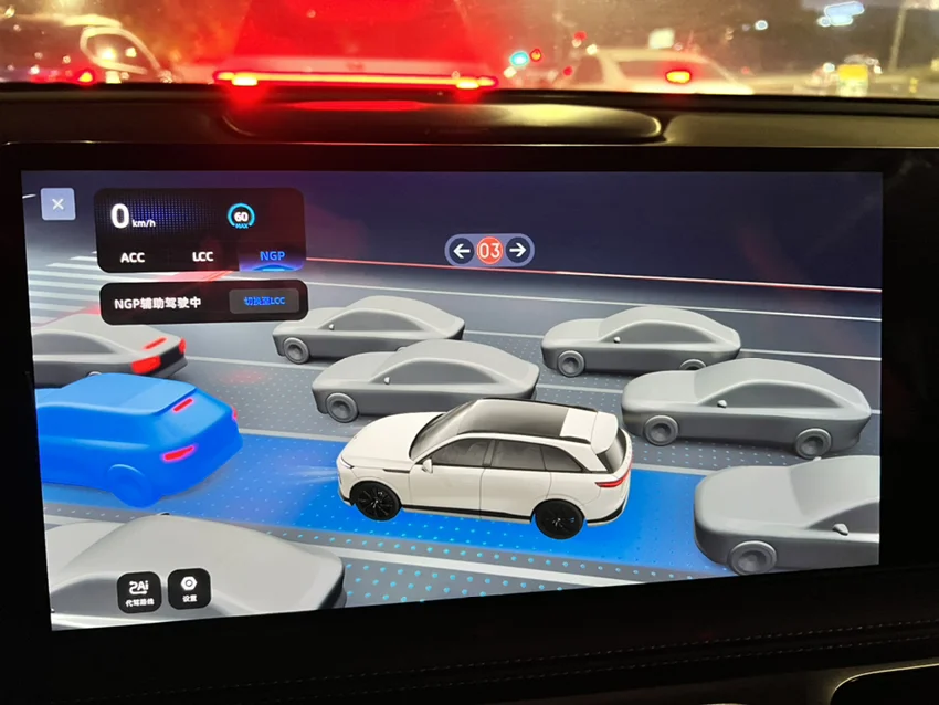 出发前设置导航路线,会计算出可使用智驾的里程,地图上会注明NGP的起点和终点。之后就出发等下NGP标志出现,按两下档位杆,NGP无感启动。
