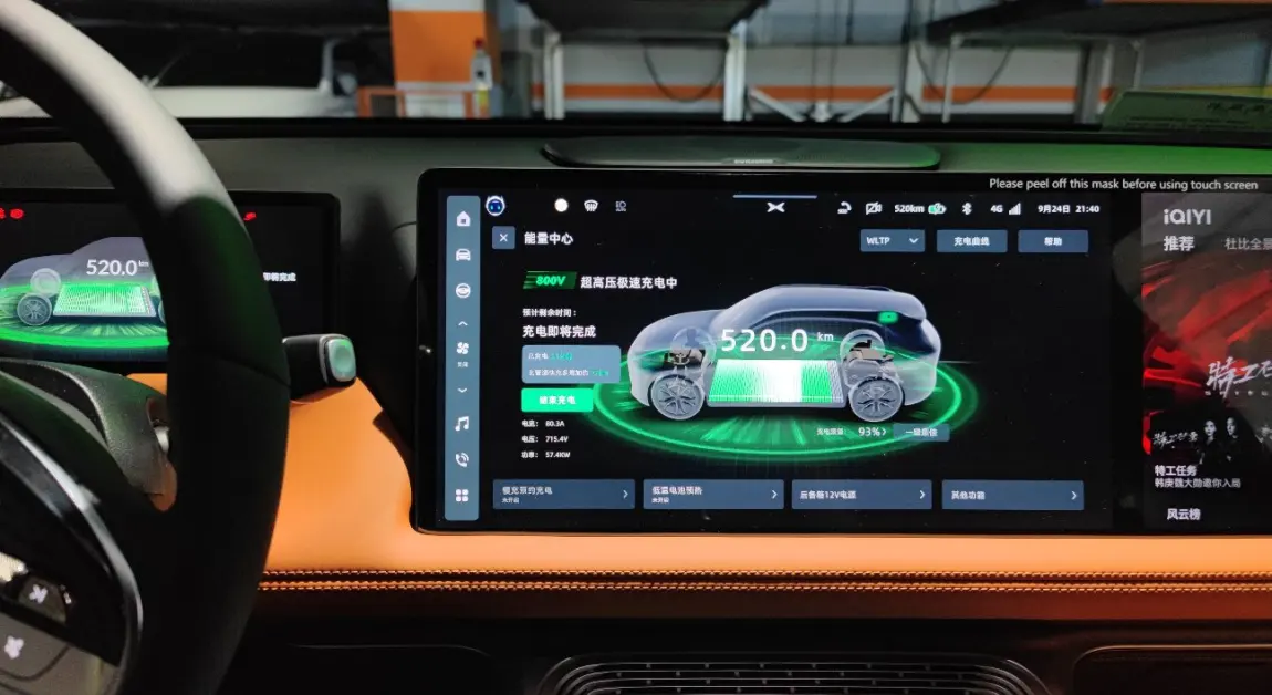 1.从北京东四环出发,把电充满到93%里程显示520:),在家门口商场的小鹏S4充电桩充了15分钟就上路啦,快乐老家出发鸭~