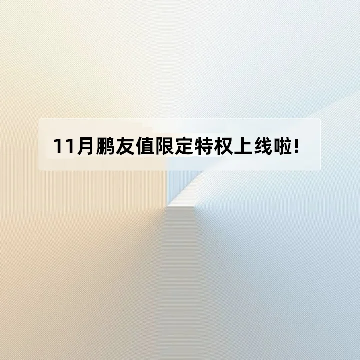 随着鹏厂交付持续提速,近期越来越多的鹏友加入到“鹏友圈”中了!为鼓励更多鹏友积极参与互动,11月鹏友值将限时上线两大新特权: