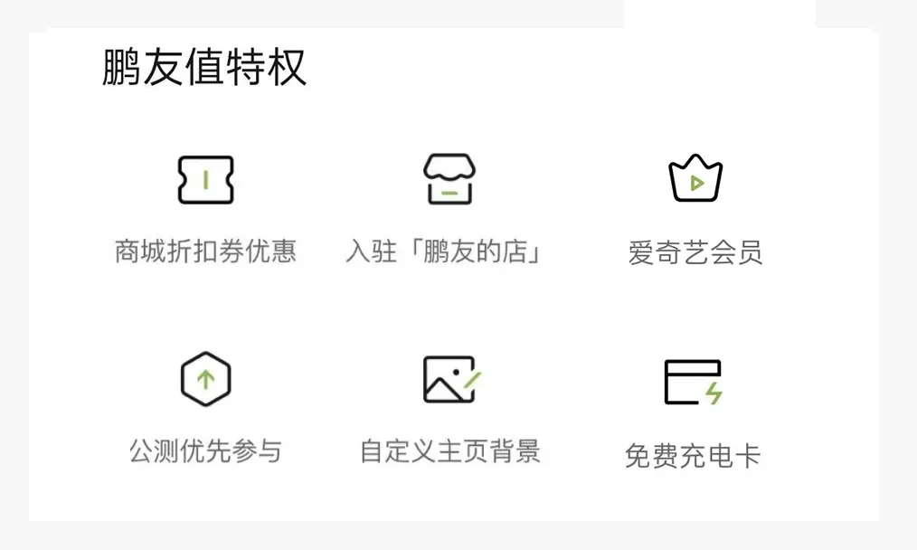 2️⃣爱奇艺会员月卡:在11月内满足鹏友值当月增长≥200且小于400(除绑定车辆与增购车辆任务)的鹏友,即可获得一张爱奇艺会员月卡兑换券,兑换券将在12月内发放至鹏友的账户。