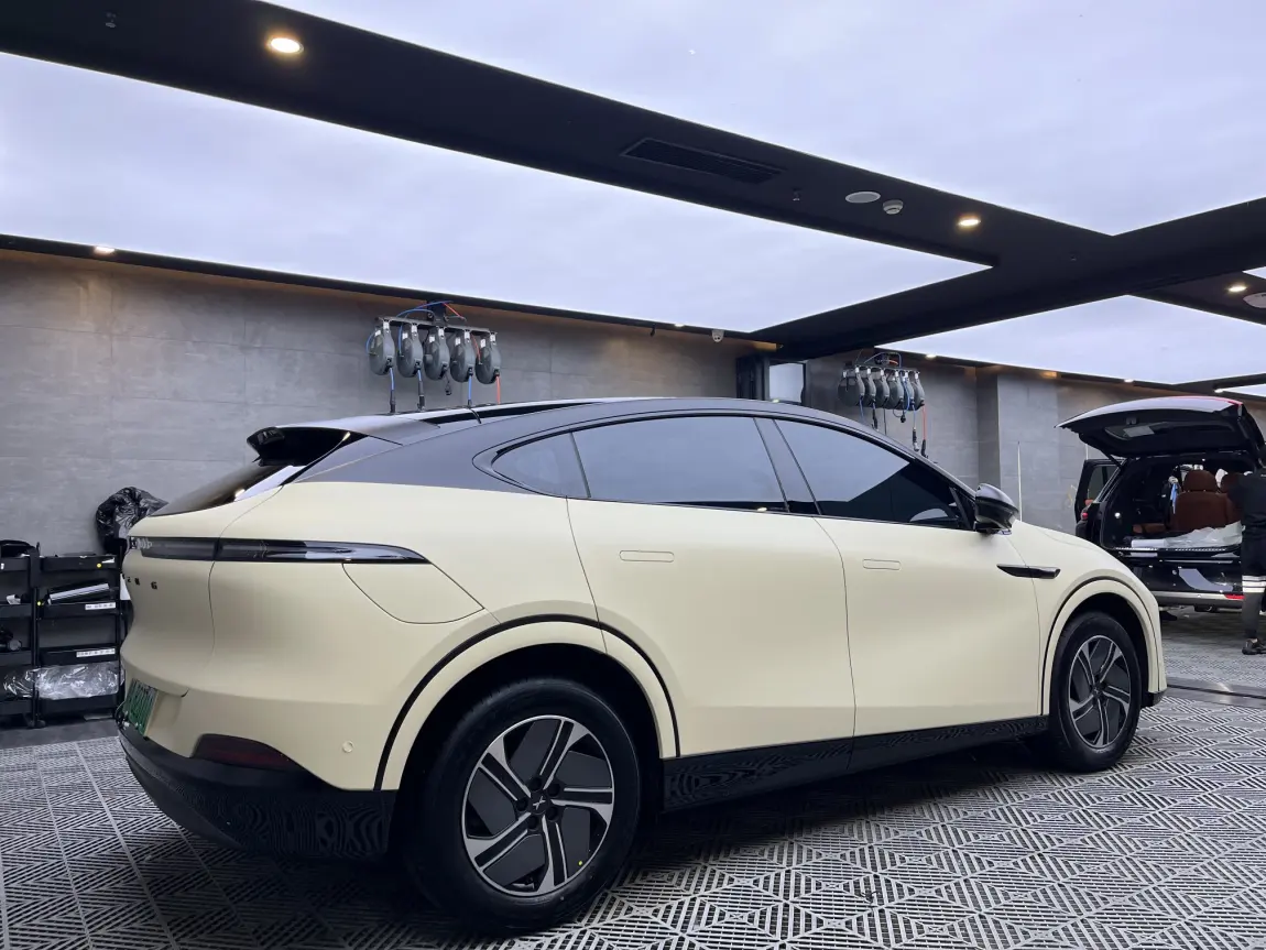 我的小鹏G6终于变成我喜欢的奶呼呼的模样,提车第二天就迫不及待的去贴膜改色,做的是Ax的绸缎沙漠黄+3M玻璃膜。悬浮顶是一定要加的。我觉得这款车有点高,希望可以通过改色在视觉上有往下压的感觉。再来说说驾驶感受,我是580续航,实际续航是480,开了7天了,用了230样子。能耗11-14,空气净化,听歌,氛围灯,自动驾驶,自动泊车都用过了。自动泊车真的挺好用。目前还没有充过电,等我第一次充电后再来分享吧。