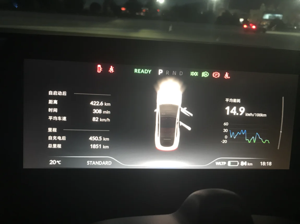 续航顿时增加180公里,信心满满走完剩下的50公里!最终因为封路绕了半天乡道最终晚上9点到家,全程500公里,用时8小时,其中休息一个半小时,四环堵车一个小时,理论高速用时五个半小时全程110-120,表显加剩余534理论上光电应该在520左右!!高速电耗14.9这个结果用群友一个字形容“diao”😁#X-TOUR#