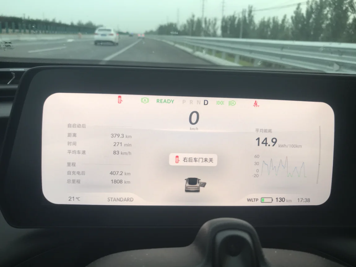 一点出发,南四环就已经开始堵了,以至于高速110-120人肉定速三个小时才跑了249公里,但充电后跑了276.8掉了298公里的满载高速成绩还是让我很惊喜!第一次休息。