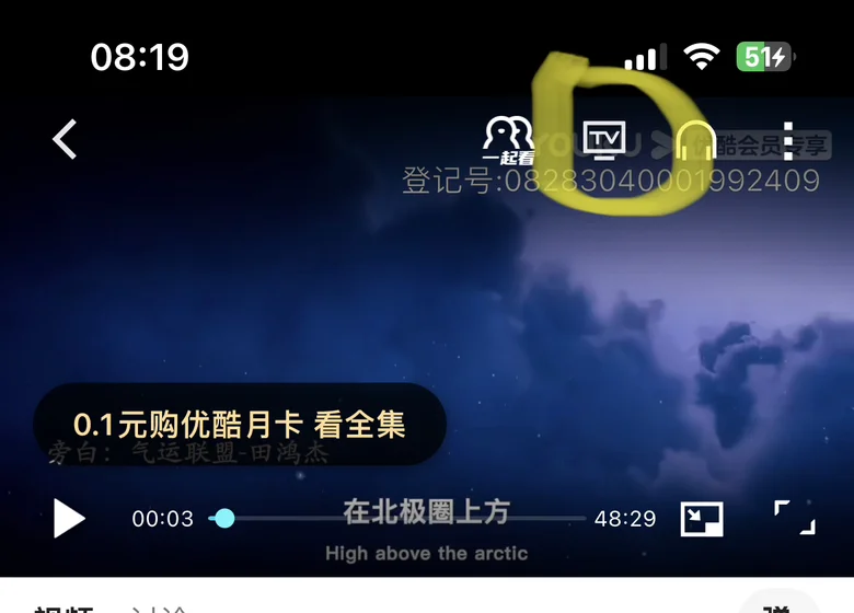 第四步:打开视频软件,我用的优酷,点开想看的视频,右上角,点击【TV】