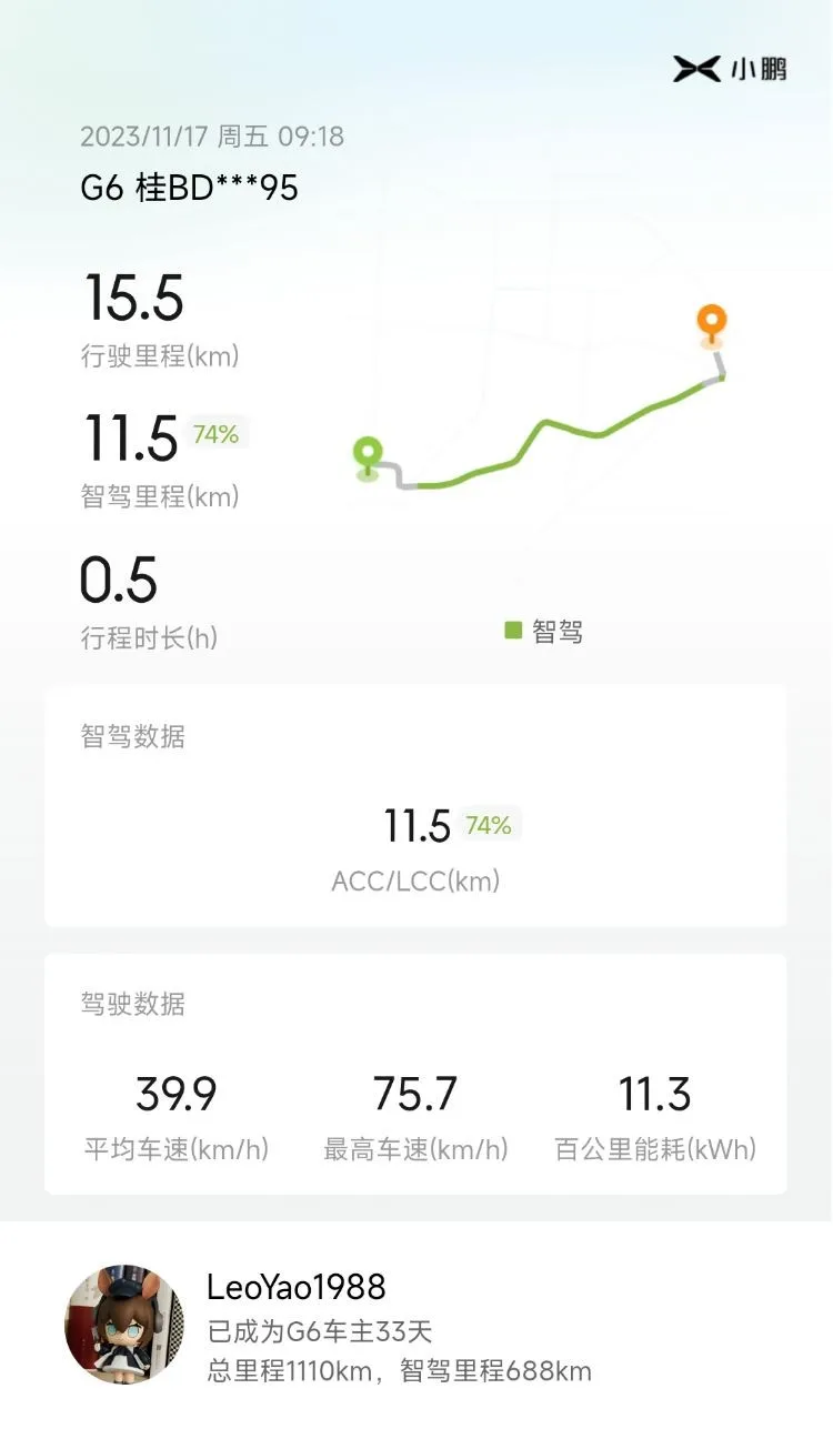 我日常用车以市内通勤为主。由于用车不多,提车一个月算上一次突发的出差任务也就跑了1100公里出头。姑且以此为有限样本分析一下G6的能耗表现。