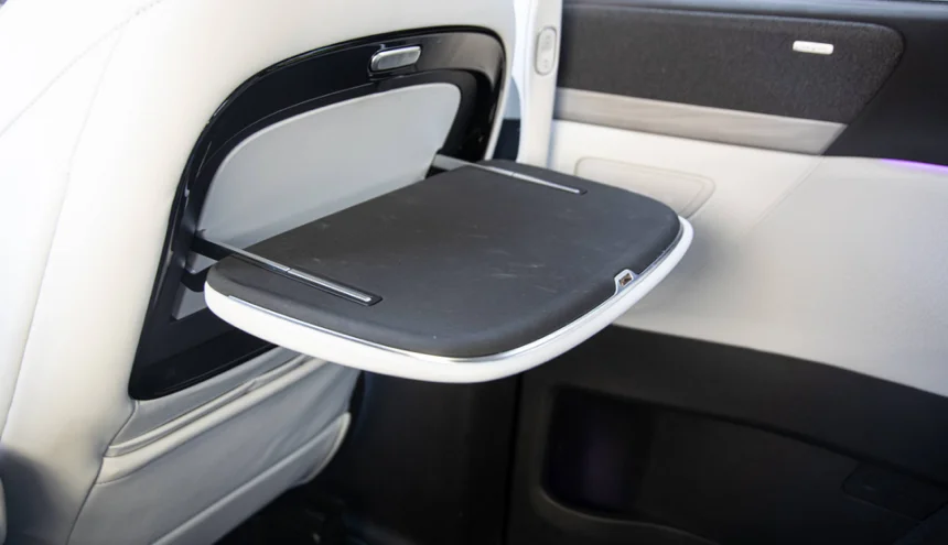 茶几+窗帘:小鹏X9二排还配备了手动隐私车窗遮阳帘以及小桌板。