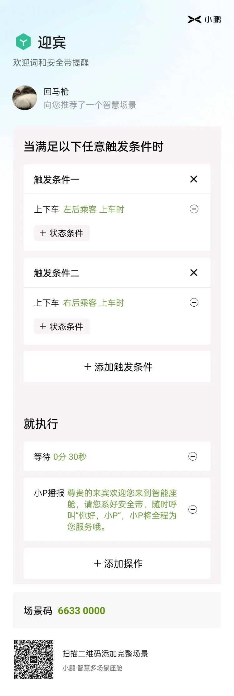 智慧场景,小鹏智能座舱的最大特色之一,强大的功能完美诠释了一群臭搞技术的执着和追求,也给理工技术宅提供了折腾的空间,既然是智慧座舱,人机互动就是重要的一环,增加乘客的参与感,提高体验乐趣,是必不可少的。