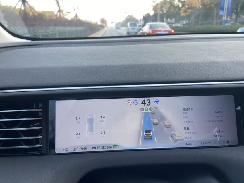 在车流量不太大的时候,我们可以放心地开启NGP,让车辆自主进行车道保持、自动跟车和自动超车等操作。进入隧道自动限速,这点够人性化,若想保持原速只需方向盘左轮拨一下即可。然而,当我们遇到匝道曲率较大或汇入车辆较多的情况时,建议还是主动接管车辆,以确保行车安全。高速能耗方面个人建议保持在110以下较经济,当然既然选择了电车,补能费用相比油车节约很多,没电了就补,电耗这东西看看就好了。建议家里安装充电桩焦虑会少很多。
