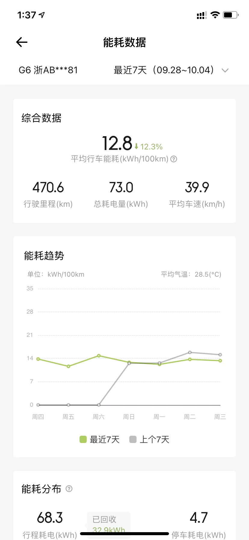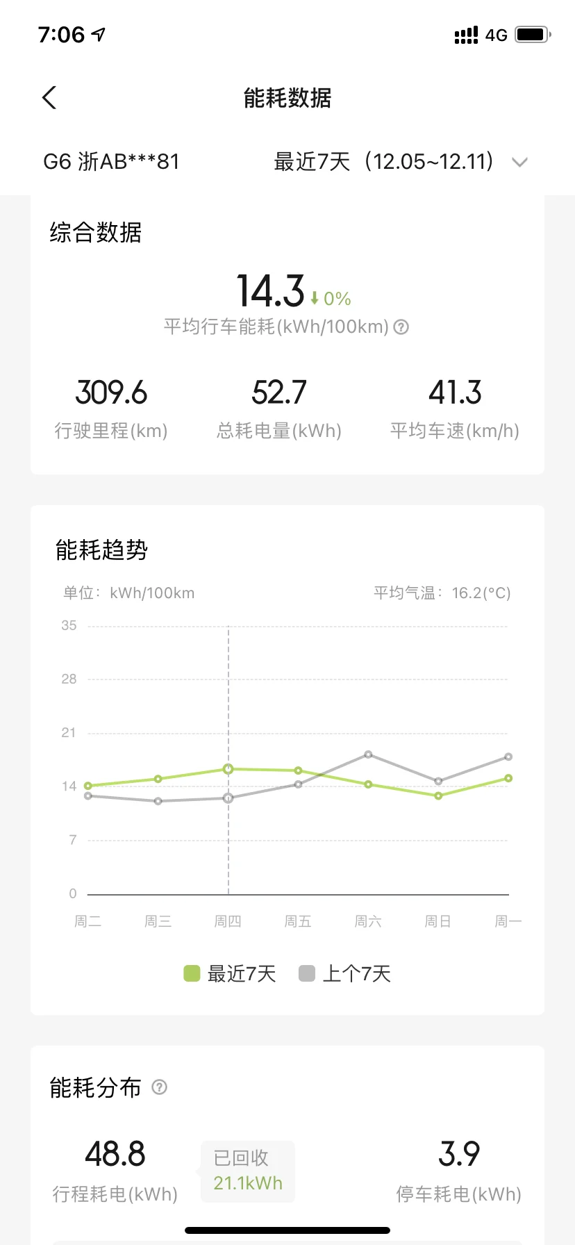 三、续航及补能表现:接近2T的车重,目前初冬综合电耗在14.3左右,