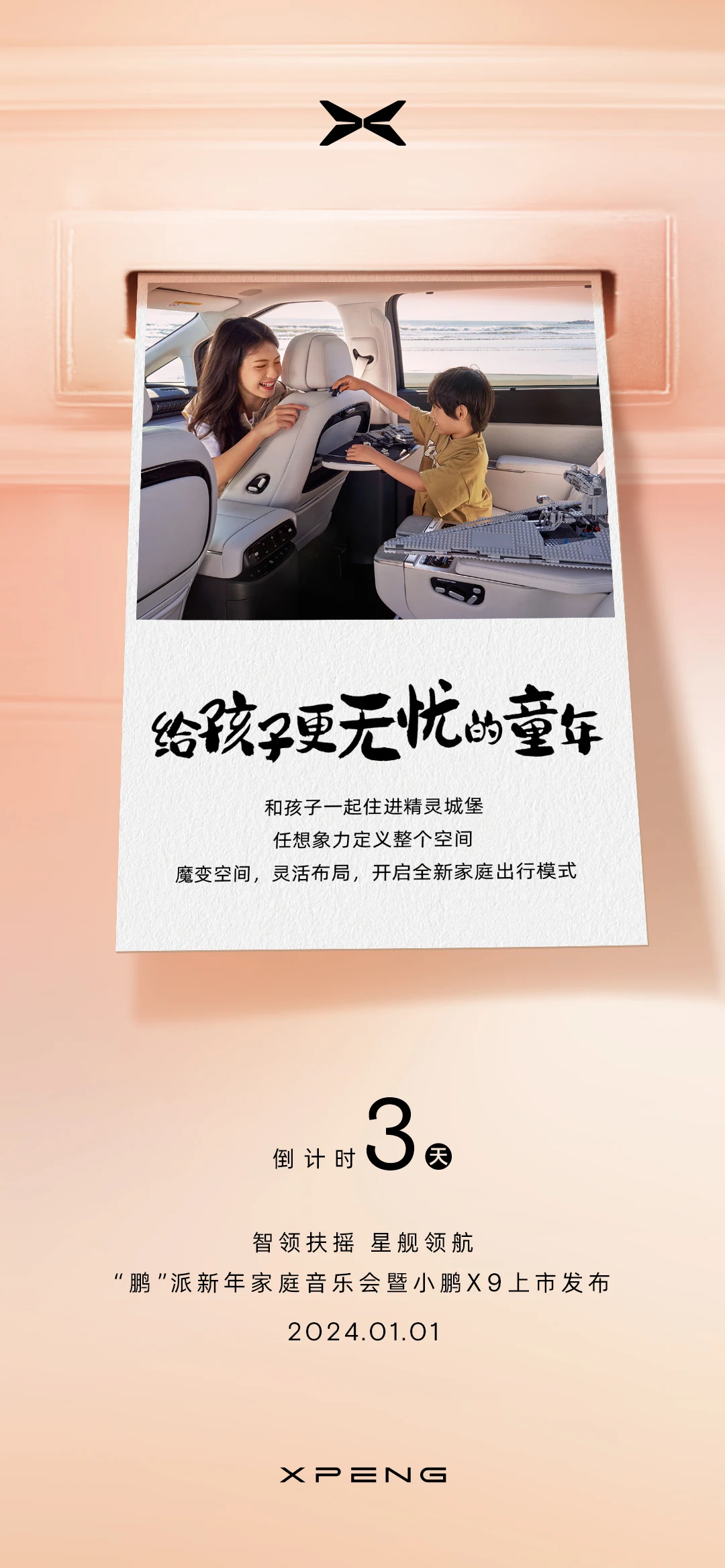 倒计时3天!“鹏”派新年家庭音乐会暨小鹏X9上市发布,要给孩子更无忧的童年。
