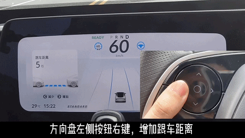 无论你是不容别人加塞的道路狂人,还是小心避让的谨慎新手,可以通过方向盘的左侧左右按键调节跟车的距离。共有5档跟车距离可供选择。