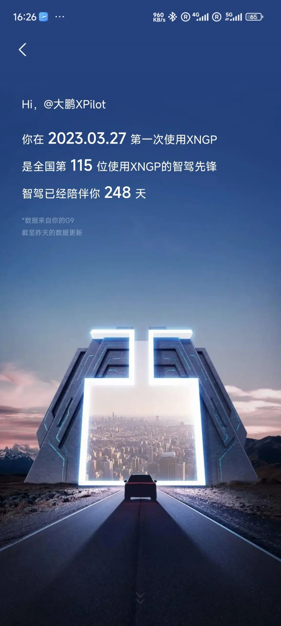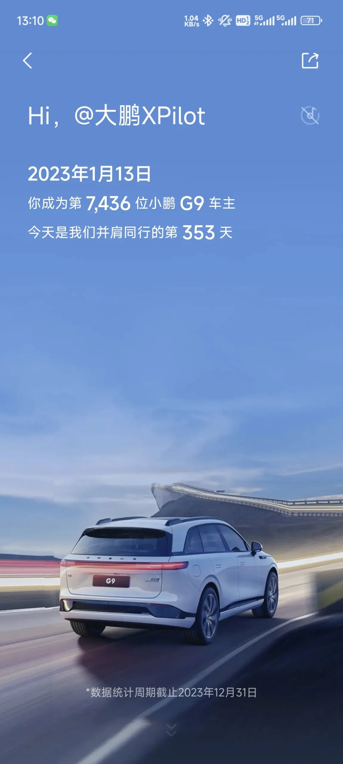 自从我于2023年1月13日成为小鹏G9的车主以来,智能驾驶已成为我出行中的得力助手。这一年里,小鹏G9陪我走过了13,710公里,超过了我所认识的大多数鹏友。在旅途中,智能驾驶领航功能为我节省了大量的精力,使我能更专注于沿途的风景。