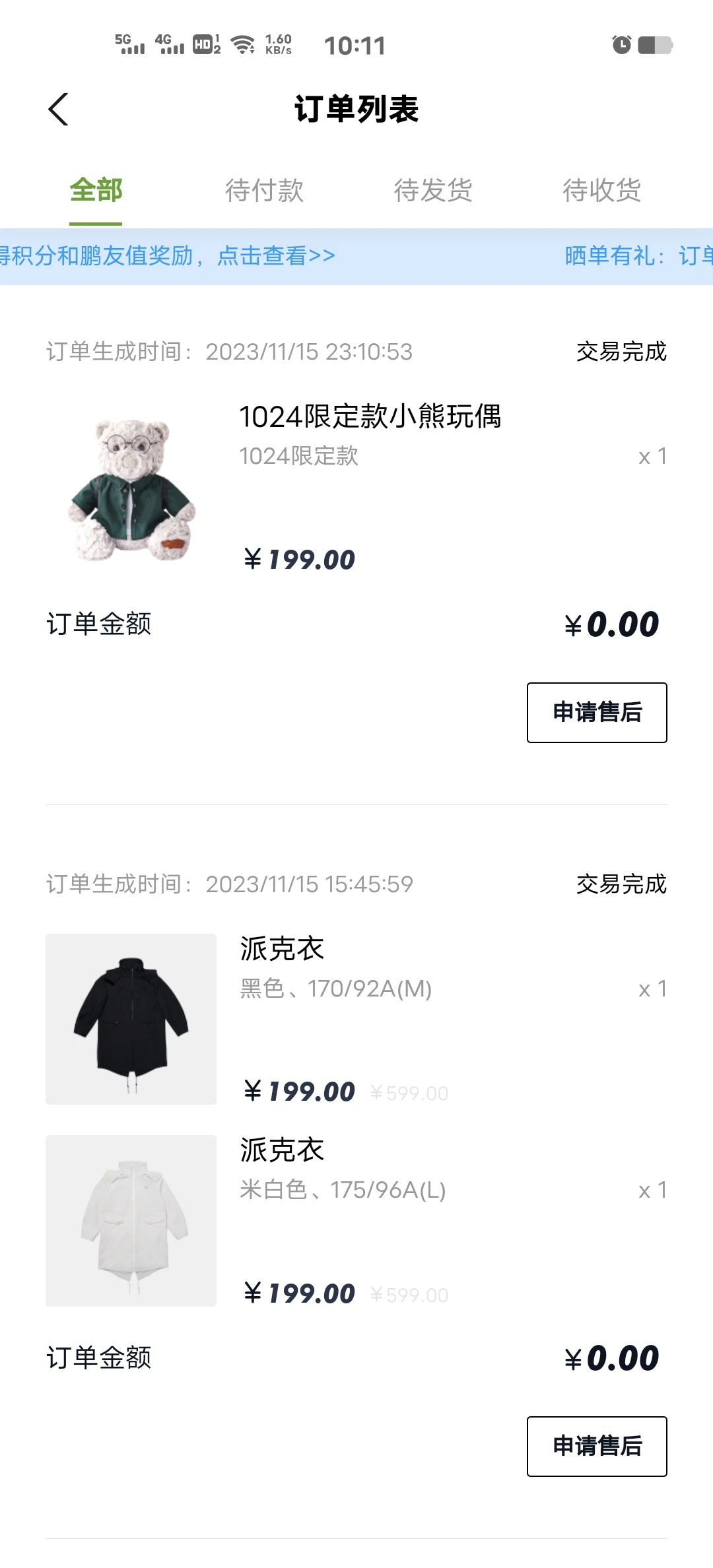 在商城里,万年中奖绝缘体还幸运中了一次免单~