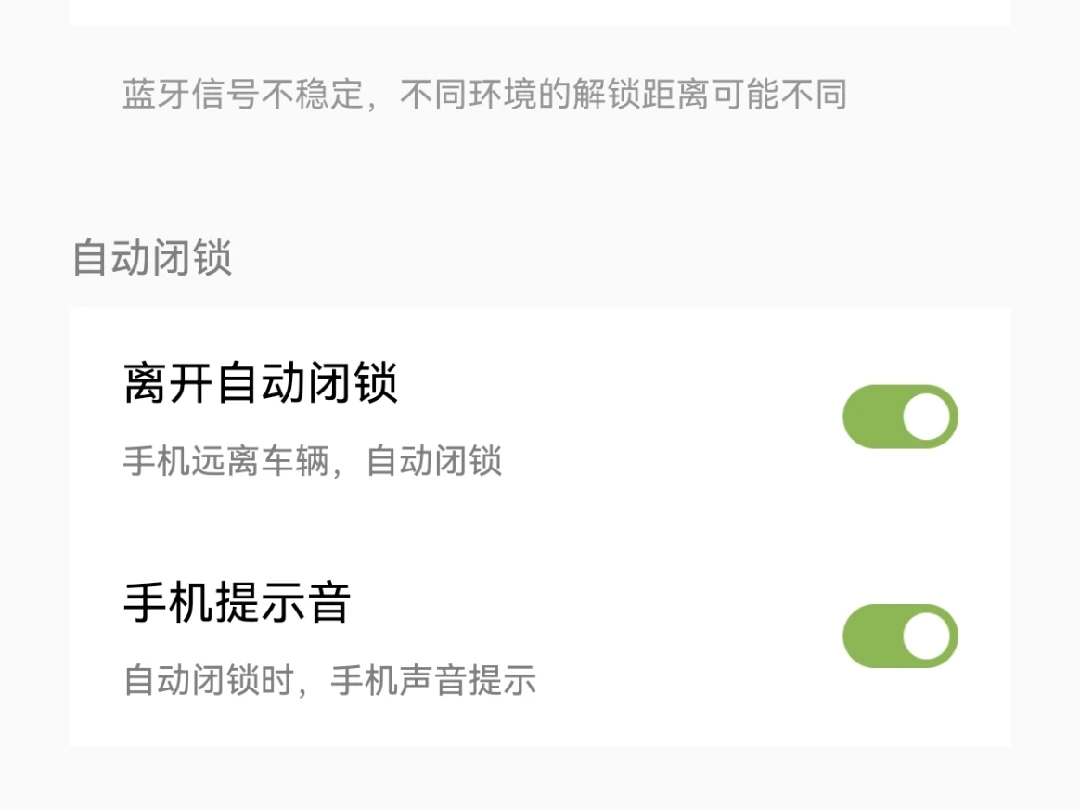 二是手机 App 关闭离车自动闭锁,但是这种情况在车上所有人下车后又不便利了,需要手动锁车。