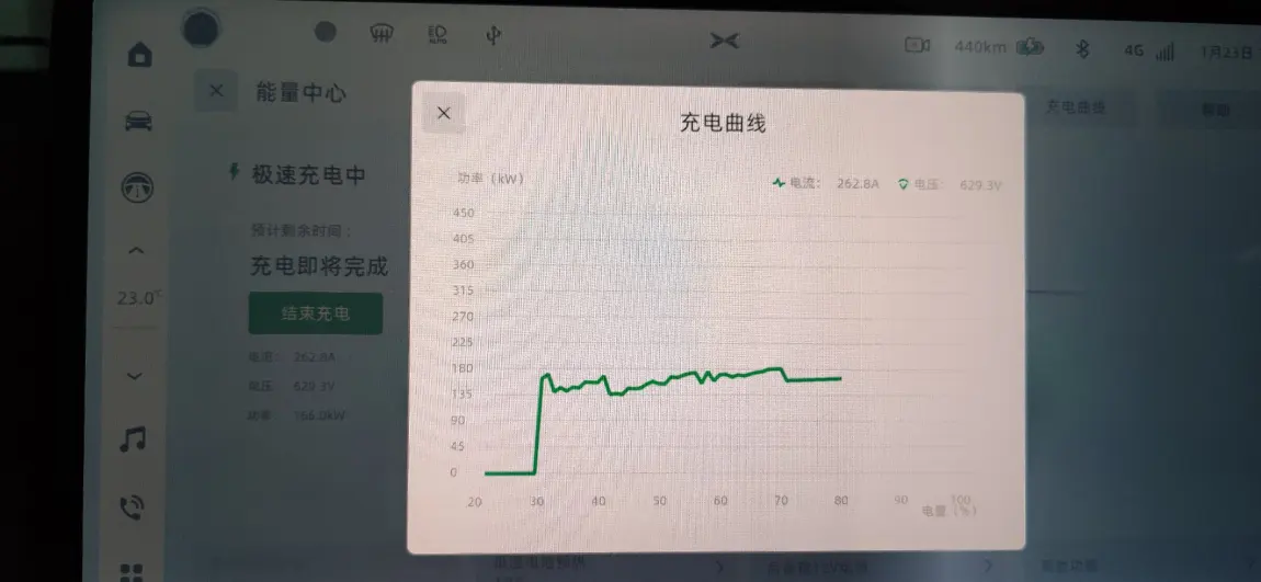 上图为-16度行驶环境,经导航至室内小鹏S4超充站的充电功率,对此十分满意。