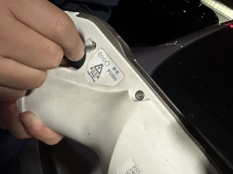 多次摸索后,从车里摸出一根牙签捅进充枪的软点,“哒”一声,充枪解锁,问题解决。