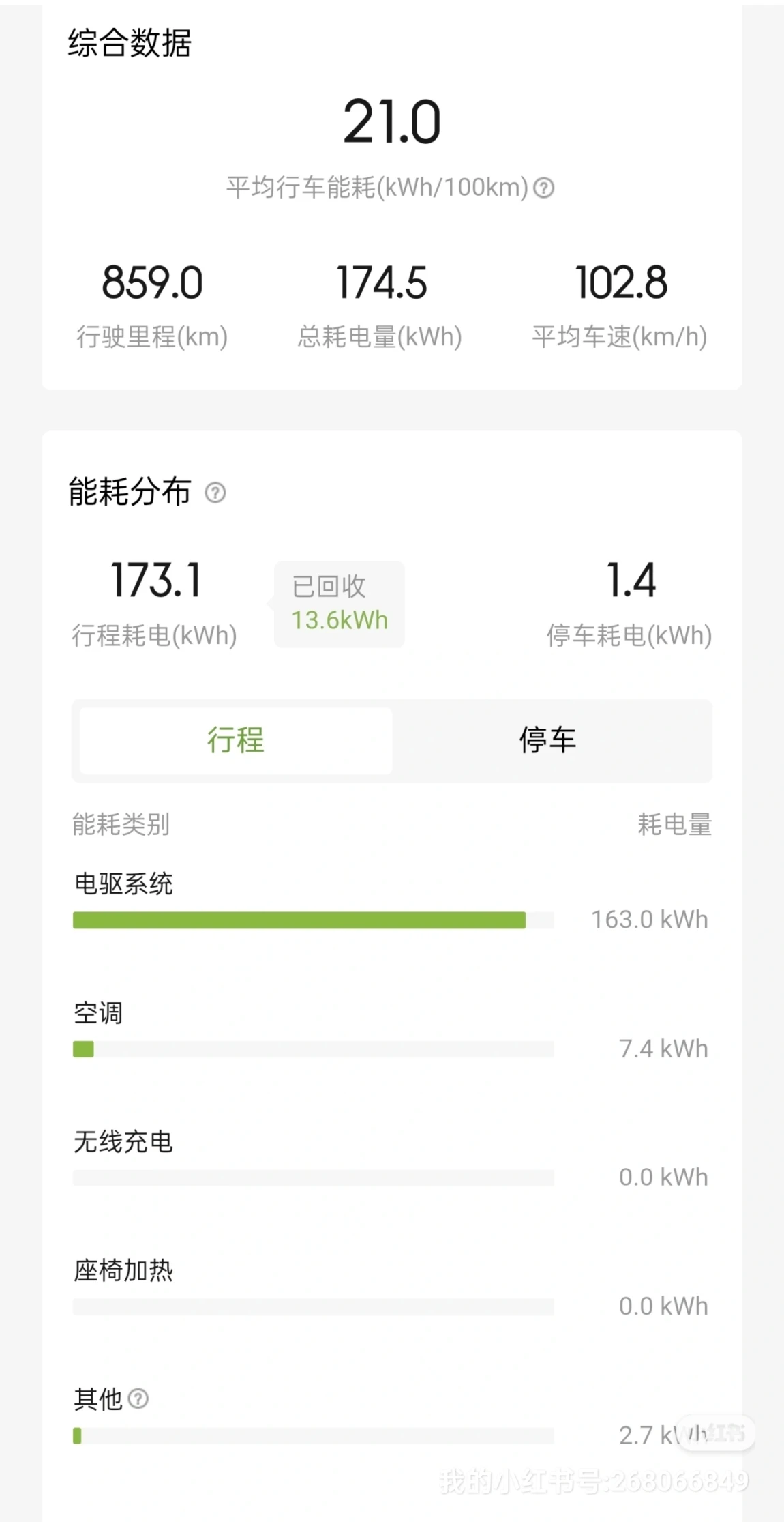 续航方面,符合冬季跑高速预期,出发前把高动能回收关了,所以回收差点意思;最快速度隐去了,自己开的时候比较激进,一半时间按巡航120或者限速100开115;空调全程22-23度两档风;后备箱和后排拉满年货,也算满载。