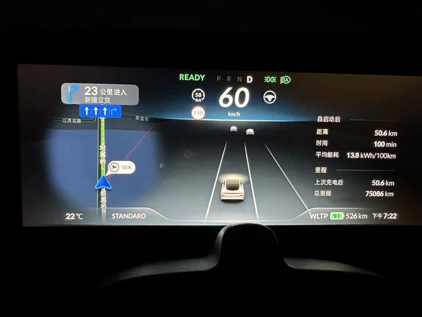 显示走了100分钟才走50公里,是因为走了20多公里低速。加上珠三角的高速开不快。能耗13.8,还反向虚标了1公里。所以,珠三角地区的高速基本上是1:1的水平。