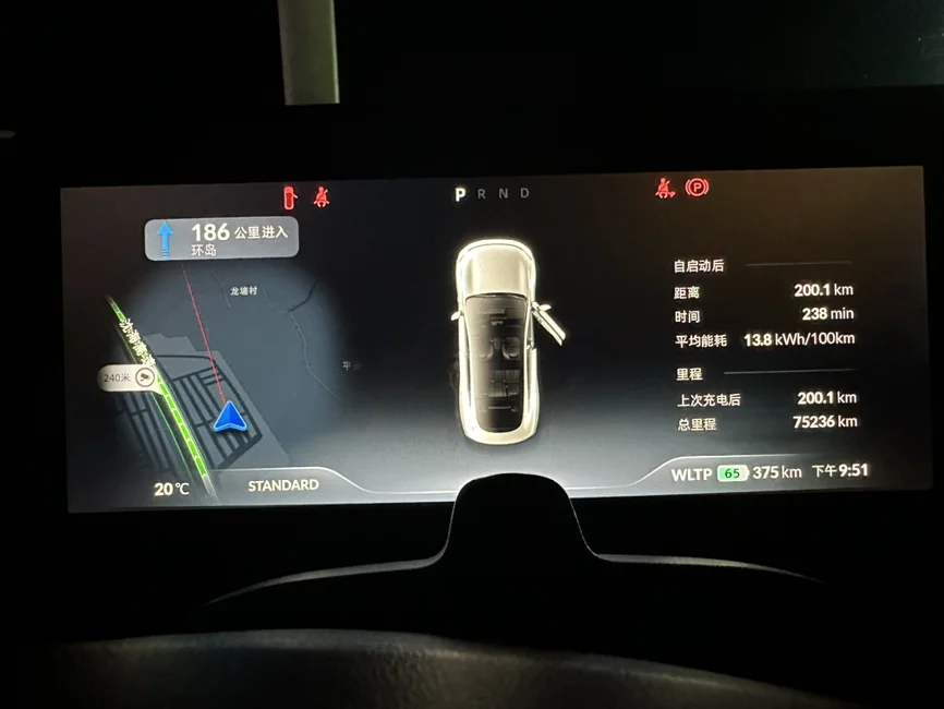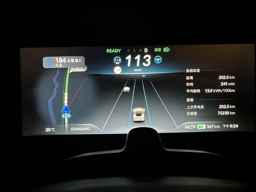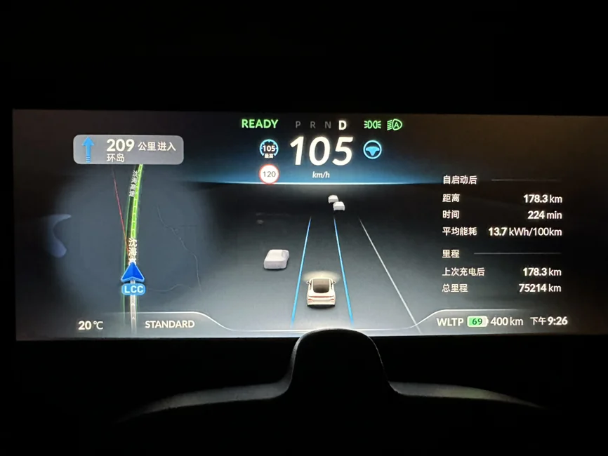 走了178公里后,表显WLTP还剩400km,能耗保持在13.7,还是反向虚标3公里,这可是满载状态啊。