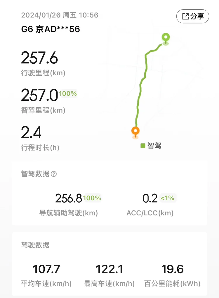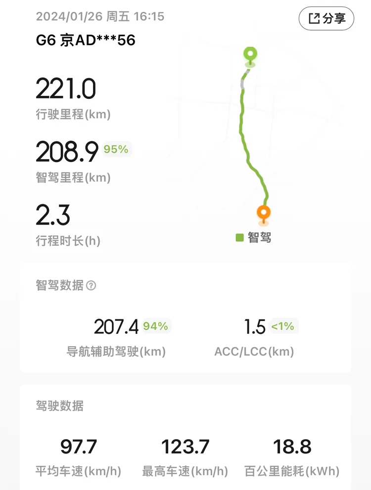 1000公里的长途,充电四次,提前规划好可以充电的服务区,一路高速使用智能驾驶最高达到100%,全程零真的实现零接管,自动并线超车都妥妥的,温馨提醒下,智能驾驶也要时刻关注路况!最后祝鹏友们龙年大吉!祝小鹏汽车扶摇直上!