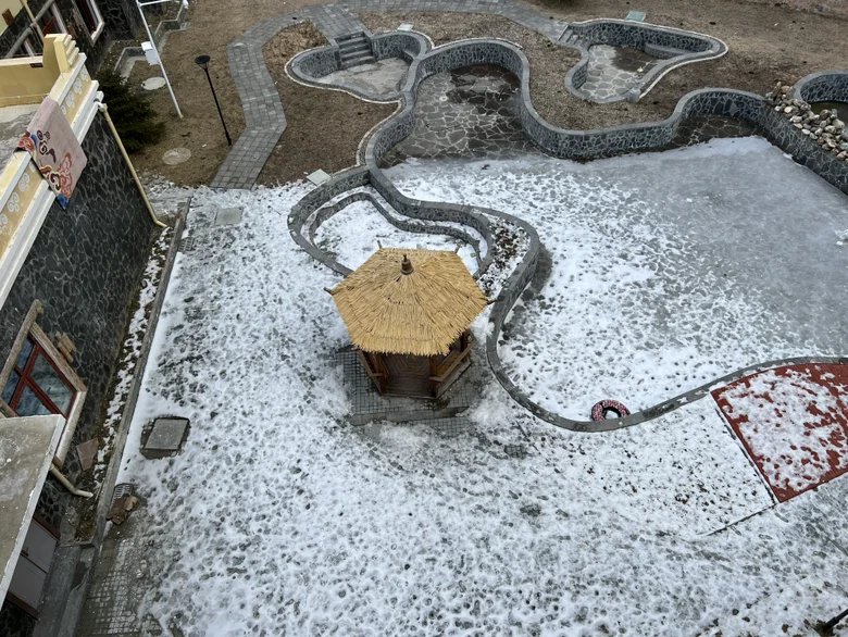 住宿选择在了距离滑雪场6公里的夹木河酒店,早晨只有-3度,打开窗户看到楼下亦然成了冰天雪地。